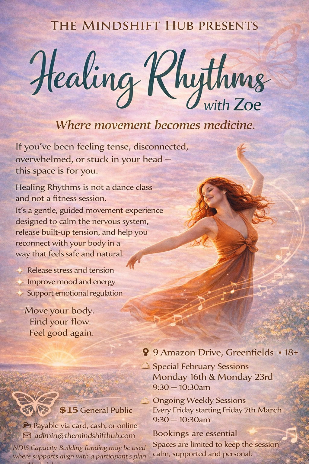 Fridays 9.30-10.30 “Move your body. Find your flow. Feel good.”